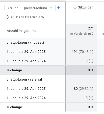Du bist dir nicht sicher, wie viele Website-Besucher*innen du schon über ChatGPT erhältst? Kein Problem: Wenn Besucher*innen über ChatGPT auf deine Seite gelangen, wird automatisch der UTM-Parameter utm_source=chatgpt.com an die URL angehängt. Du kannst in Google Analytics & Co. genau tracken, wie viele Nutzerinnen über ChatGPT zu dir kommen!